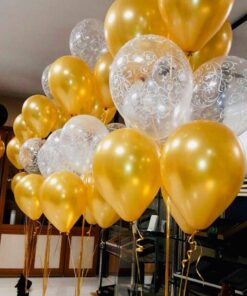 - این دسته شامل 10عددبادکنک(6عددبادکنک طلایی،4 عدد بادکنک صدفی فیلگری)میباشدکه باگاز هلیوم پرشده است.(شناور در هوا)